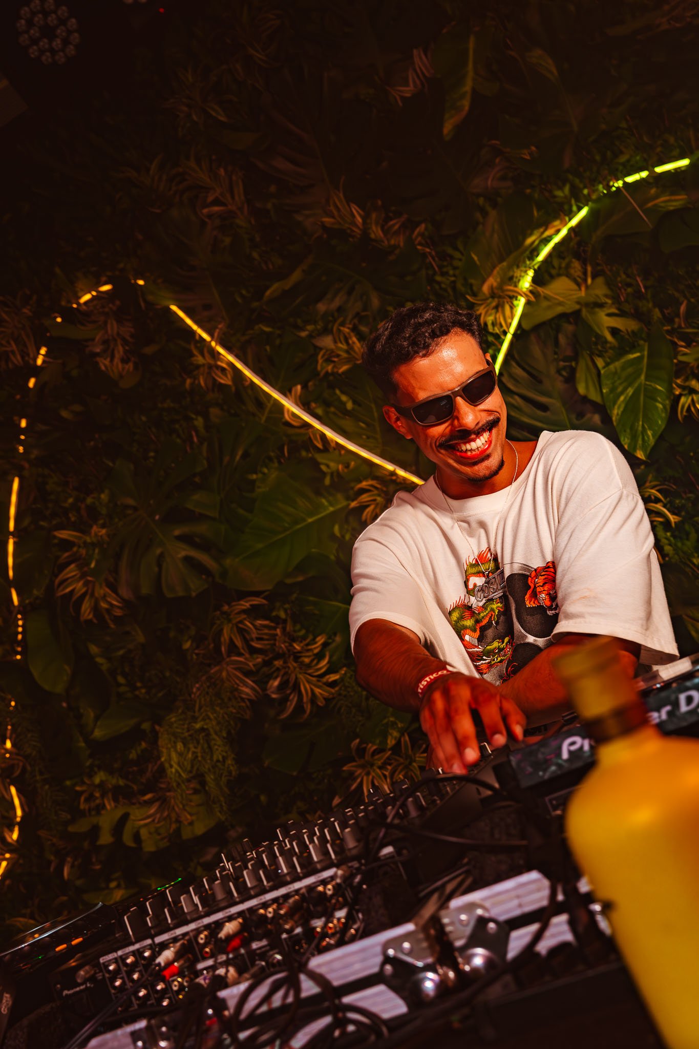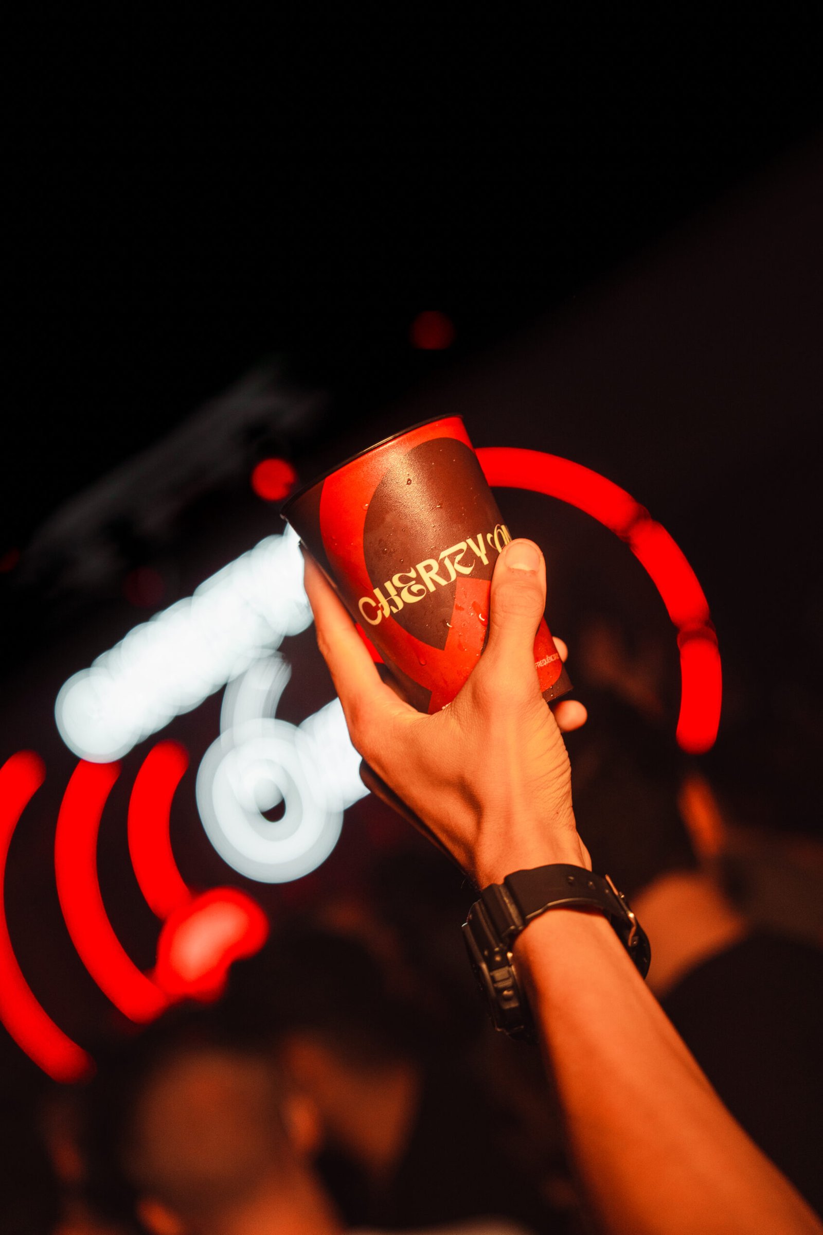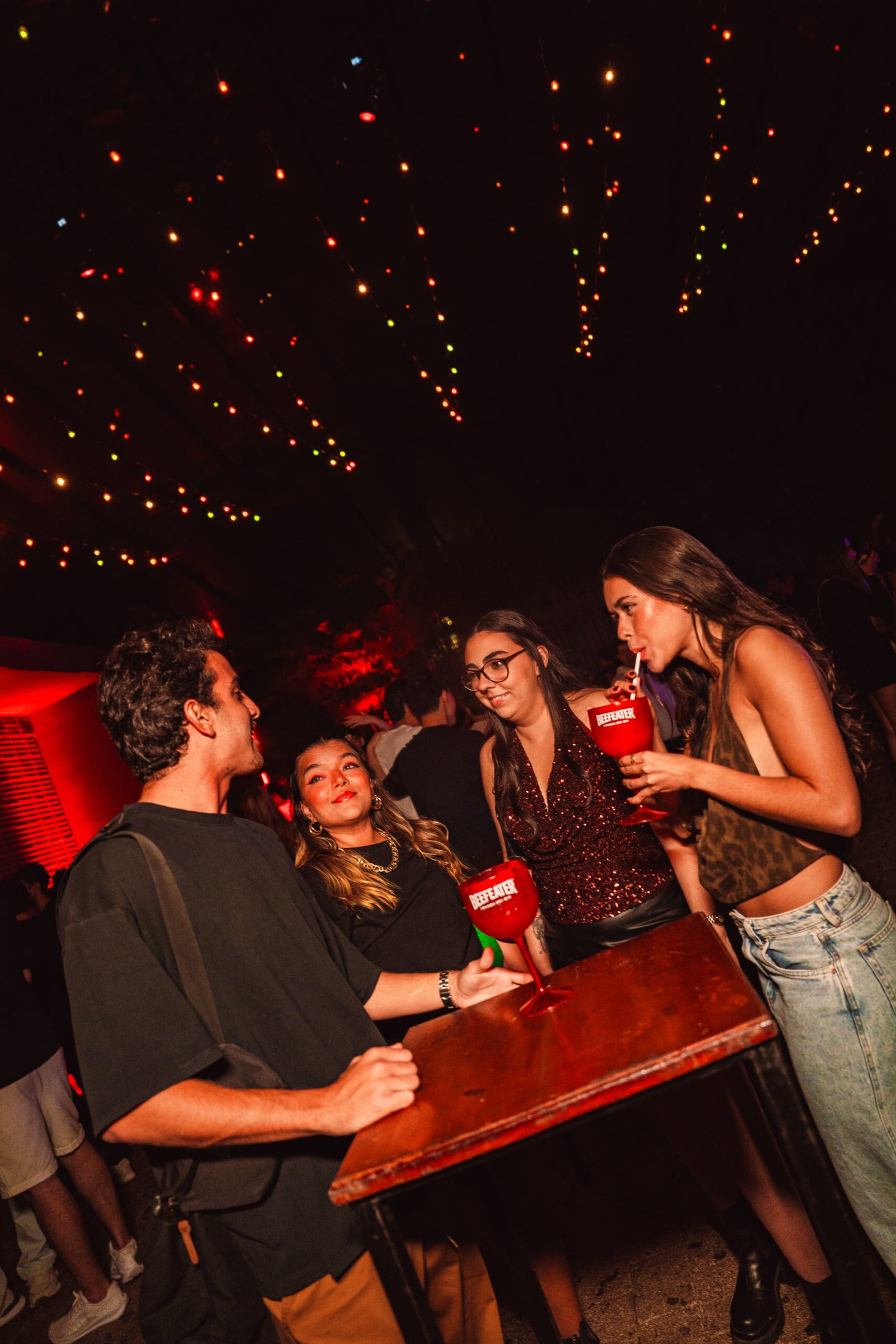 Com olhar atento aos sócios, às convidadas e aos elementos visuais — como a fumaça, as luzes e a cereja, símbolo central da festa —, captamos a presença das parceiras Beefeater, Red Bull e H2O de forma natural, fluida e sem excessos.